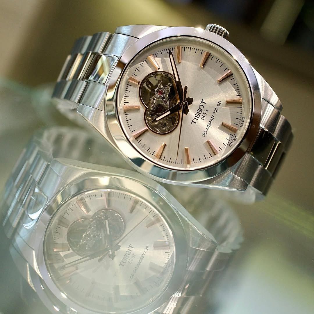 Elevate your style with the sophisticated craftsmanship of the Tissot 7AA Premium Collection. Designed for the modern gentleman, this automatic timepiece features a stunning silver sunburst dial accented with elegant rose gold-tone hour markers and hands. The open-heart window offers a glimpse into the precision of the Swiss-made Powermatic 80 movement, renowned for its impressive 80-hour power reserve.